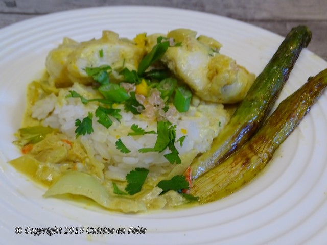 par là, je te remercie. Il a appelé un ragoût de lotte au curry, mais pour moi, un ragoût