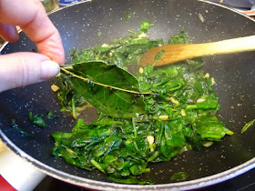 épluchez et hachez l'ail, rincez les feuilles d'épinards, séchez les