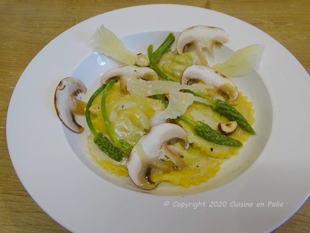 Ravioli aux champignons bruns,